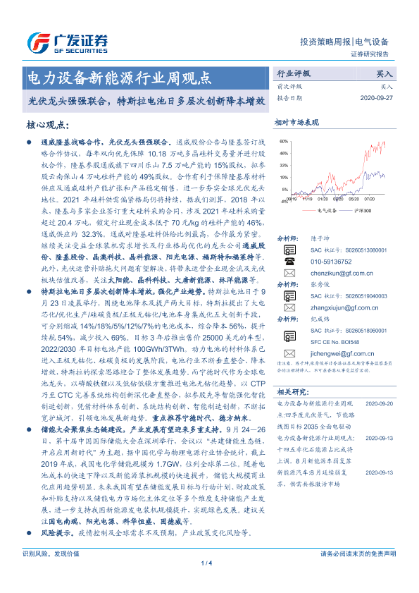 【广发证券】【20200927】电力设备新能源行业周观点:光伏龙头强强联合,特斯拉电池日多层次创新降本增效-4页