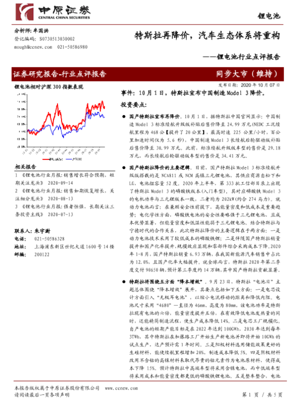 【中原证券】【20201007】锂电池行业点评报告:特斯拉再降价,汽车生态体系将重构-5页