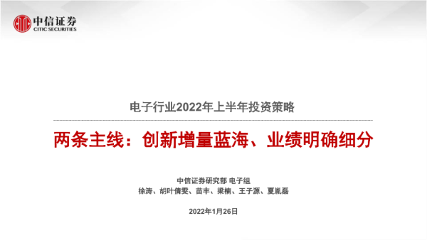 【中信证券】【20220126】电子行业2022年上半年投资策略:两条主线,创新增量蓝海、业绩确定细分-91页