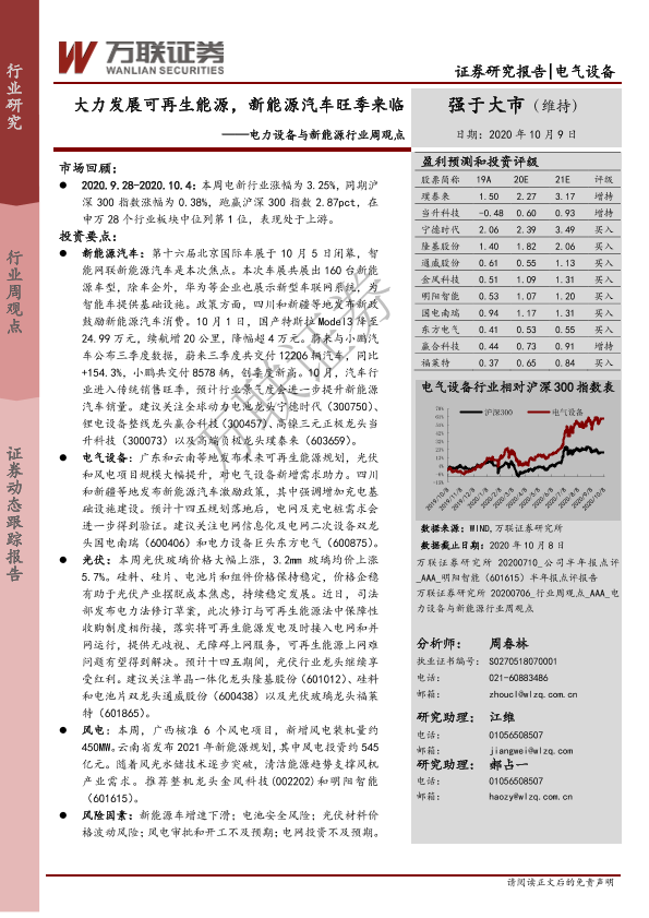 【万联证券】【20201009】电力设备与新能源行业周观点:大力发展可再生能源,新能源汽车旺季来临-13页