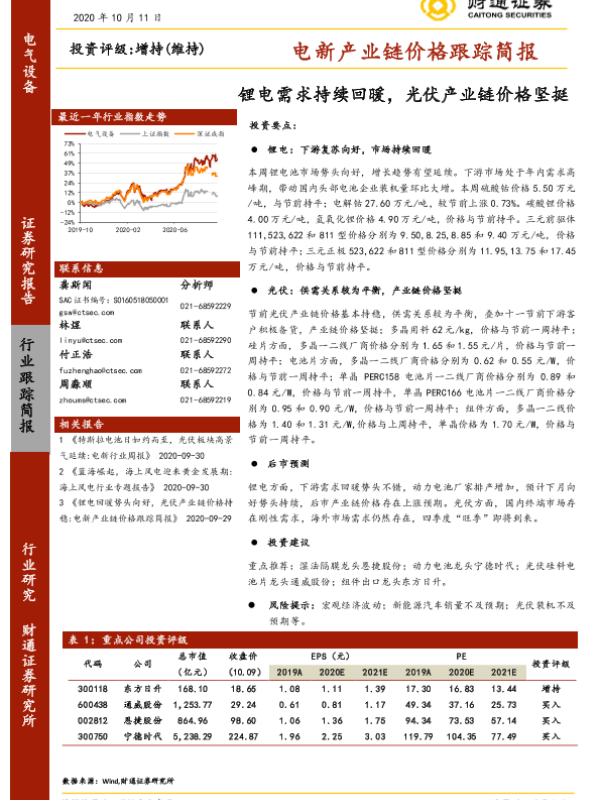 【财通证券】【20201011】电新产业链价格跟踪简报:锂电需求持续回暖,光伏产业链价格坚挺-11页