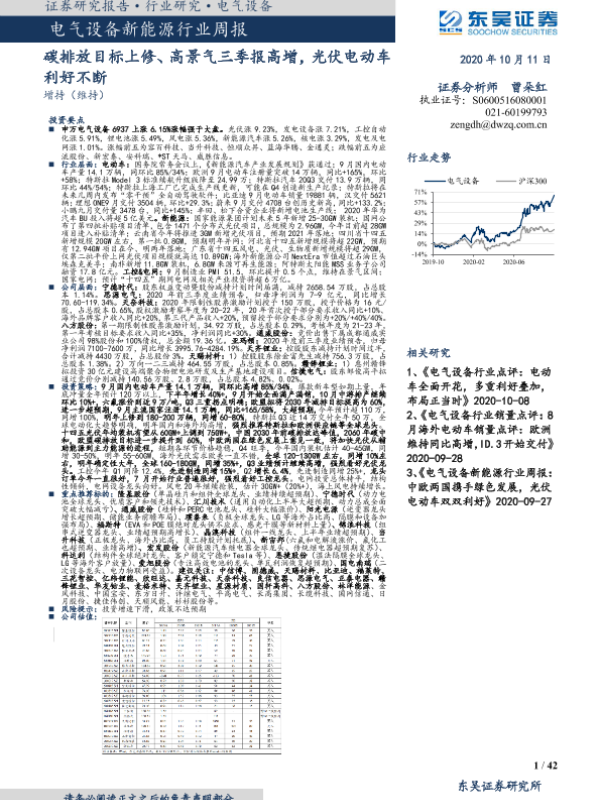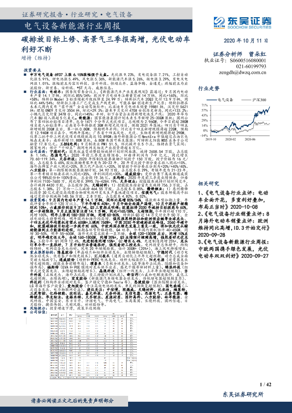 【东吴证券】【20201011】电气设备新能源行业周报:碳排放目标上修、高景气三季报高增,光伏电动车利好不断-42页