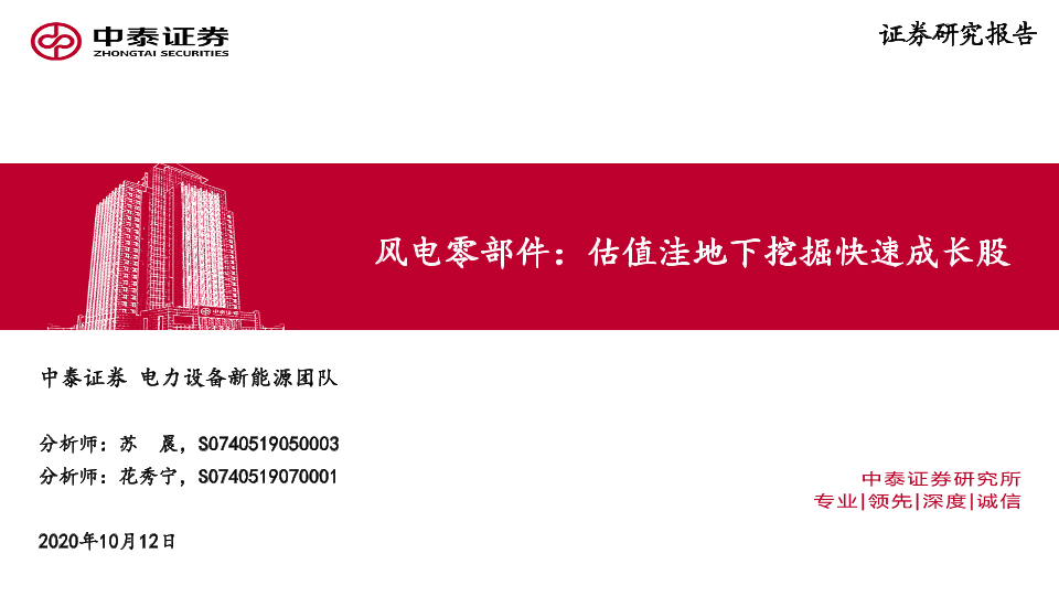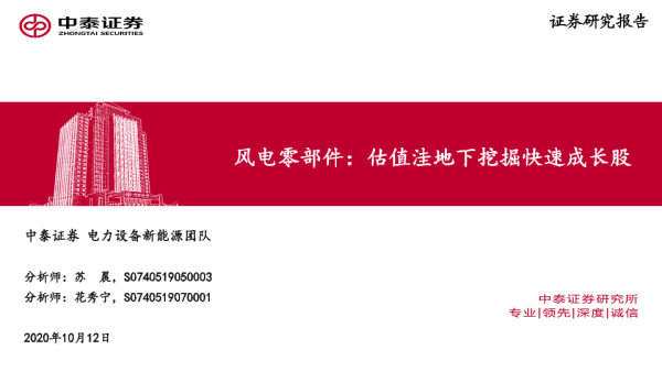 【中泰证券】【20201012】风电零部件:估值洼地下挖掘快速成长股-41页