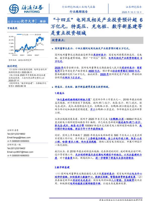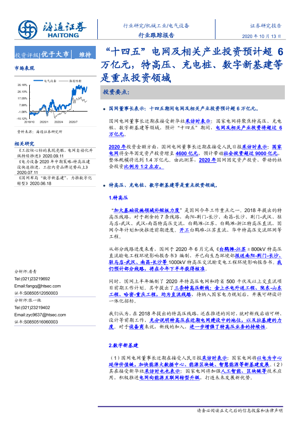 【海通证券】【20201013】“十四五”电网及相关产业投资预计超6万亿元,特高压、充电桩、数字新基建等是重点投资领域-3页