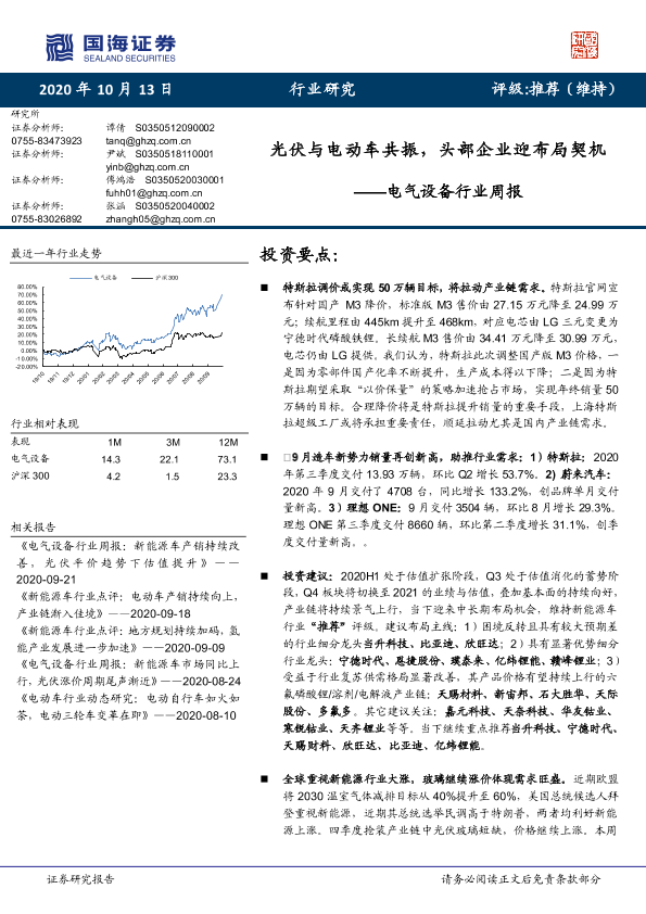 【国海证券】【20201013】电气设备行业周报:光伏与电动车共振,头部企业迎布局契机-10页