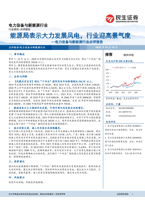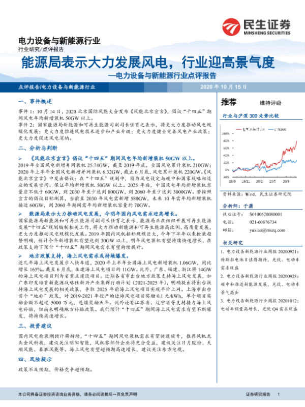 【民生证券】【20201015】能源局表示大力发展风电,行业迎高景气度-4页
