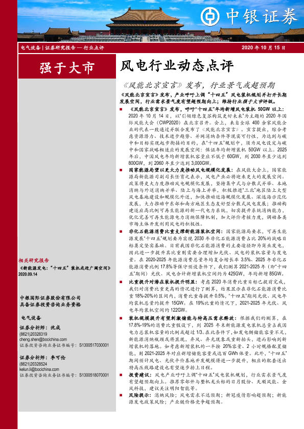 【中银证券】【20201015】风电行业动态点评:《风能北京宣言》发布,行业景气或超预期-4页