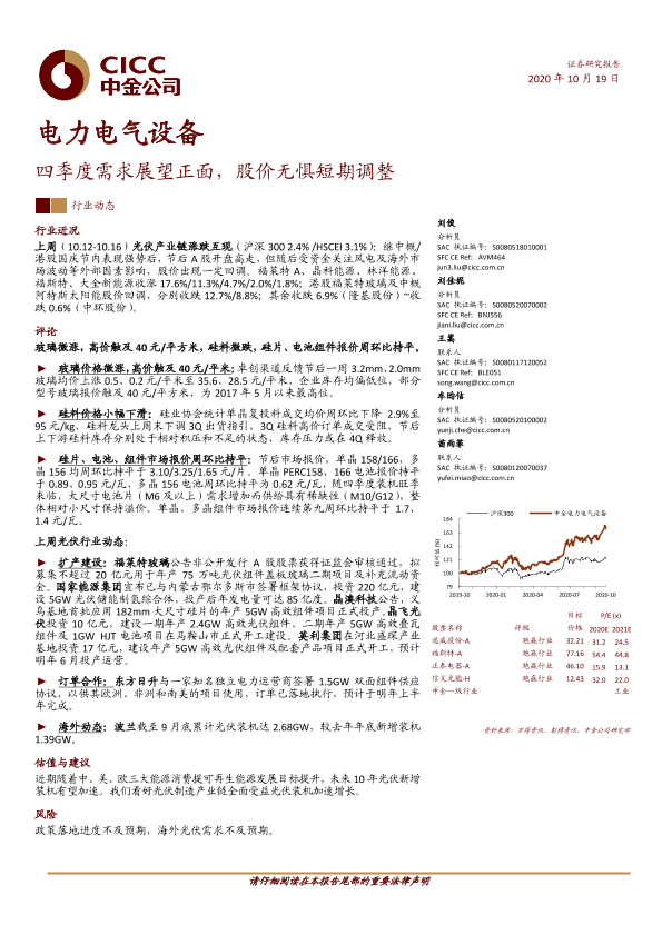【中金公司】【20201019】电力电气设备:四季度需求展望正面,股价无惧短期调整-8页
