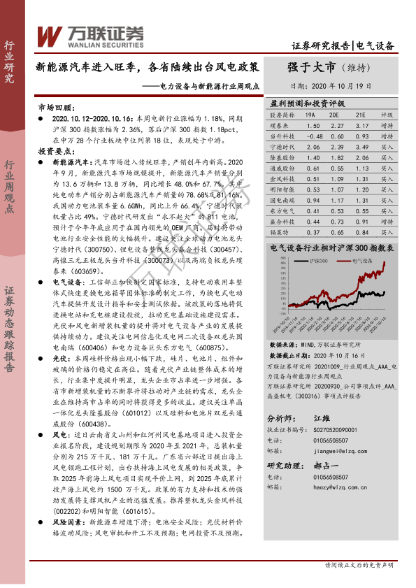 【万联证券】【20201019】电力设备与新能源行业周观点:新能源汽车进入旺季,各省陆续出台风电政策-16页