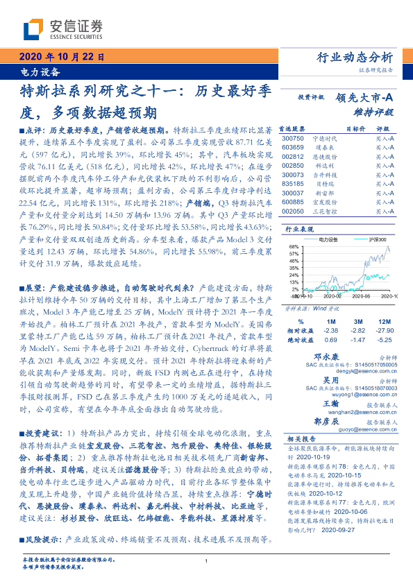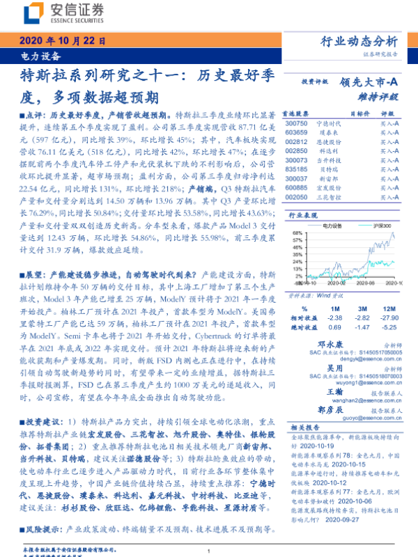 【安信证券】【20201022】特斯拉系列研究之十一:历史最好季度,多项数据超预期-17页