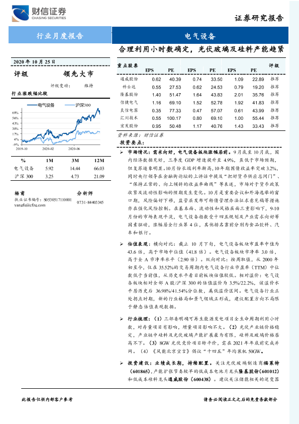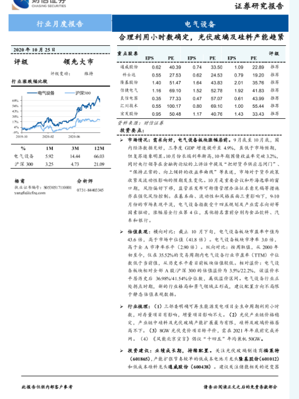 【财信证券】【20201025】电气设备行业月度报告:合理利用小时数确定,光伏玻璃及硅料产能趋紧-19页