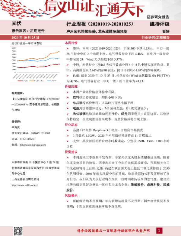 【山西证券】【20201025】光伏行业周报:户用装机持续旺盛,龙头业绩多超预期-11页