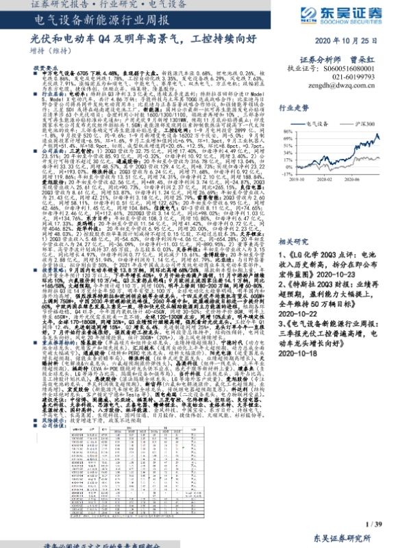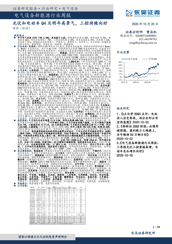 【东吴证券】【20201025】电气设备新能源行业周报:光伏和电动车Q4及明年高景气,工控持续向好-39页