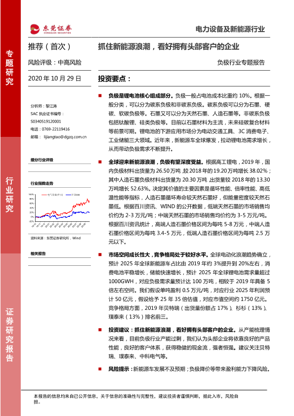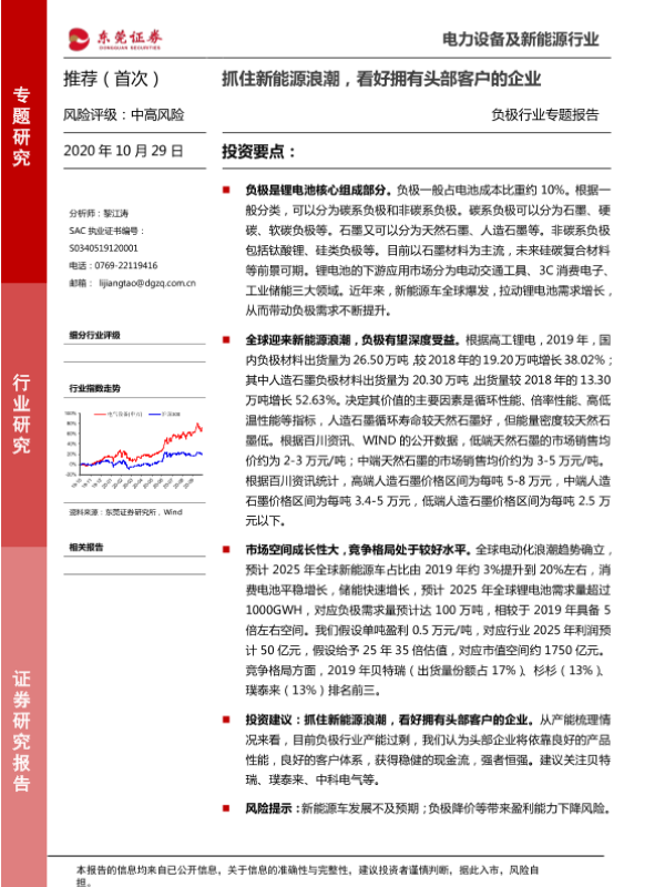 【东莞证券】【20201029】20201029-东莞证券-负极行业专题报告:抓住新能源浪潮,看好拥有头部客户的企业-13页