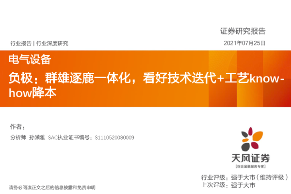 【天风证券】【20210725】电气设备行业深度研究:负极:群雄逐鹿一体化,看好技术迭代+工艺know-how降本-51页