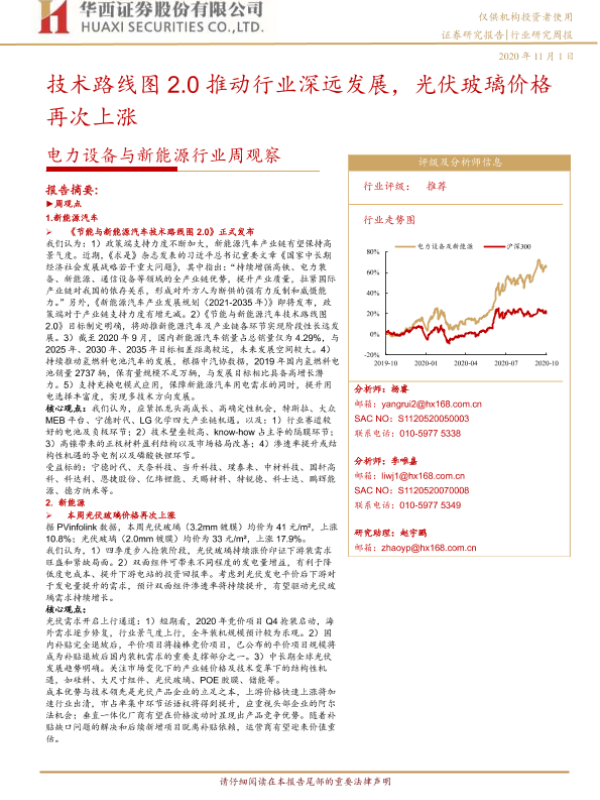 【华西证券】【20201101】电力设备与新能源行业周观察:技术路线图2.0推动行业深远发展,光伏玻璃价格再次上涨-16页