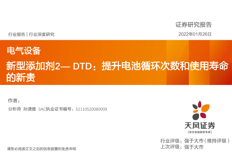 【天风证券】【20220126】电气设备行业深度研究:新型添加剂2- DTD,提升电池循环次数和使用寿命的新贵-38页