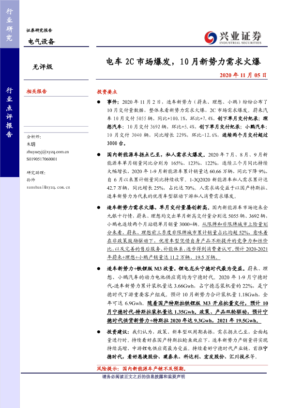 【兴业证券】【20201105】电车2C市场爆发,10月新势力需求火爆-8页