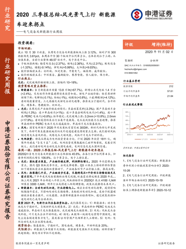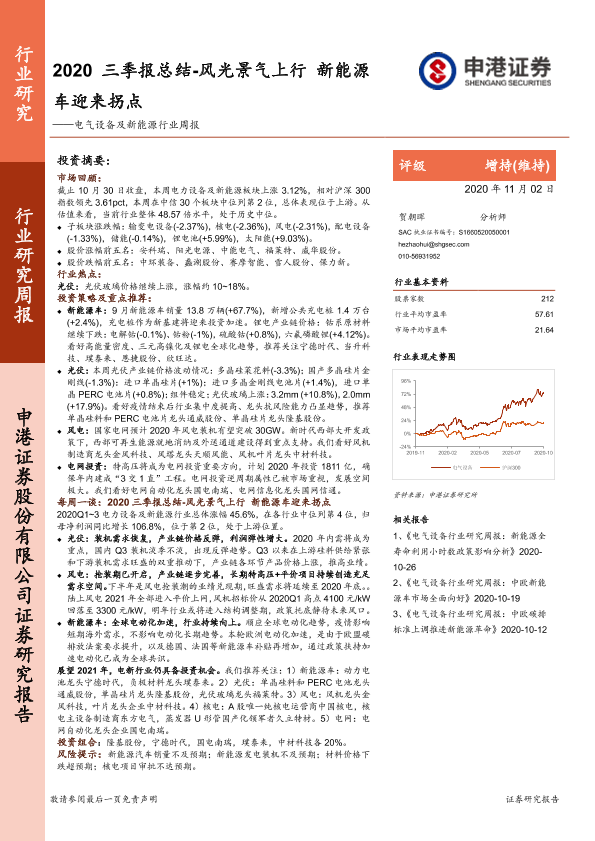 【申港证券】【20201102】2020三季报总结-风光景气上行 新能源车迎来拐点-53页