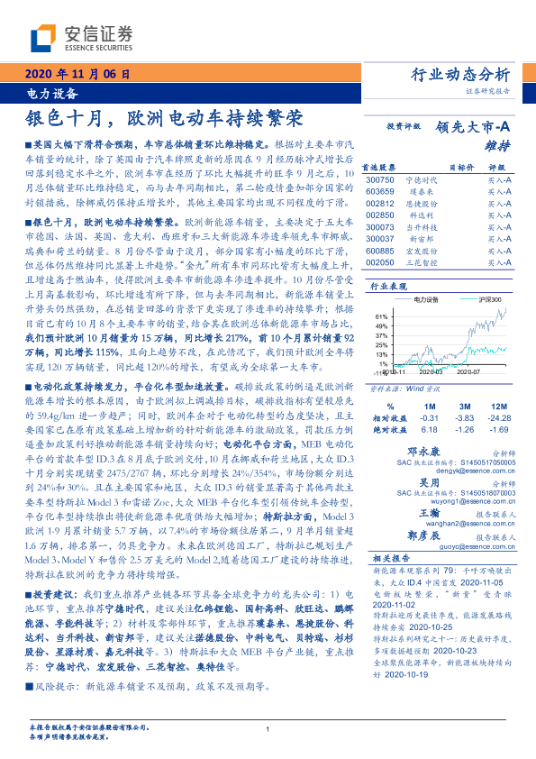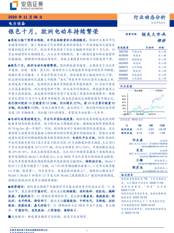 【安信证券】【20201106】电力设备行业动态分析:银色十月,欧洲电动车持续繁荣-14页