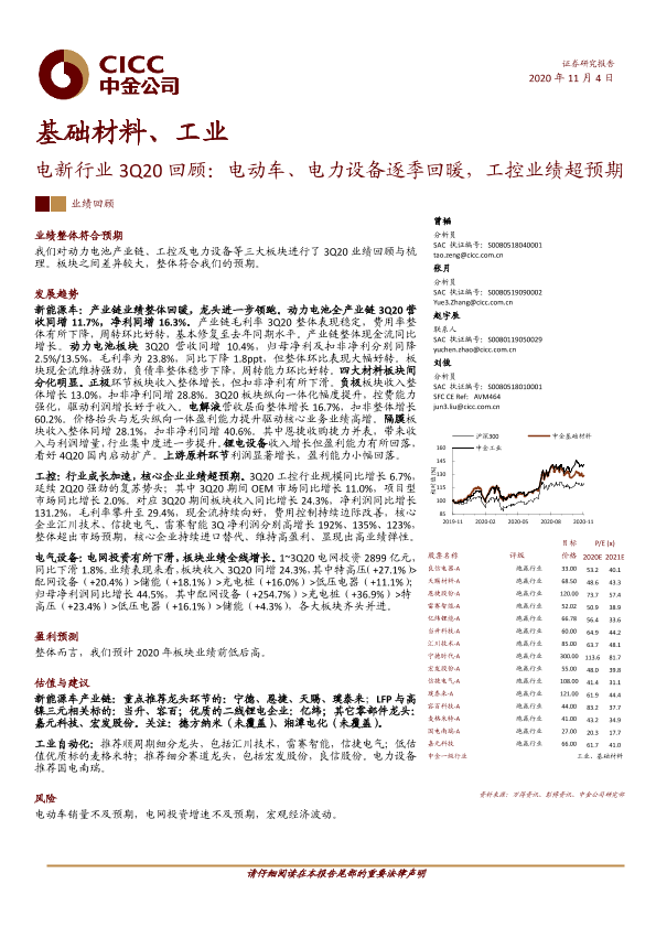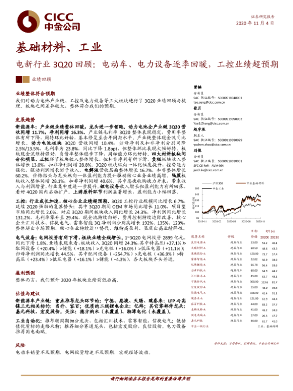 【中金公司】【20201104】电新行业3Q20回顾:电动车、电力设备逐季回暖,工控业绩超预期-30页