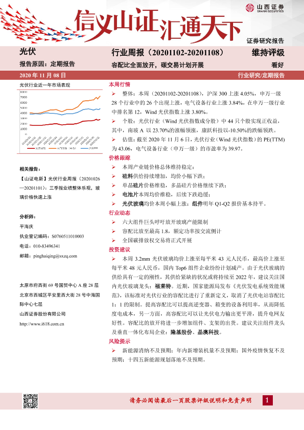 【山西证券】【20201108】20201108-山西证券-光伏行业周报:容配比全面放开,碳交易计划开展-10页