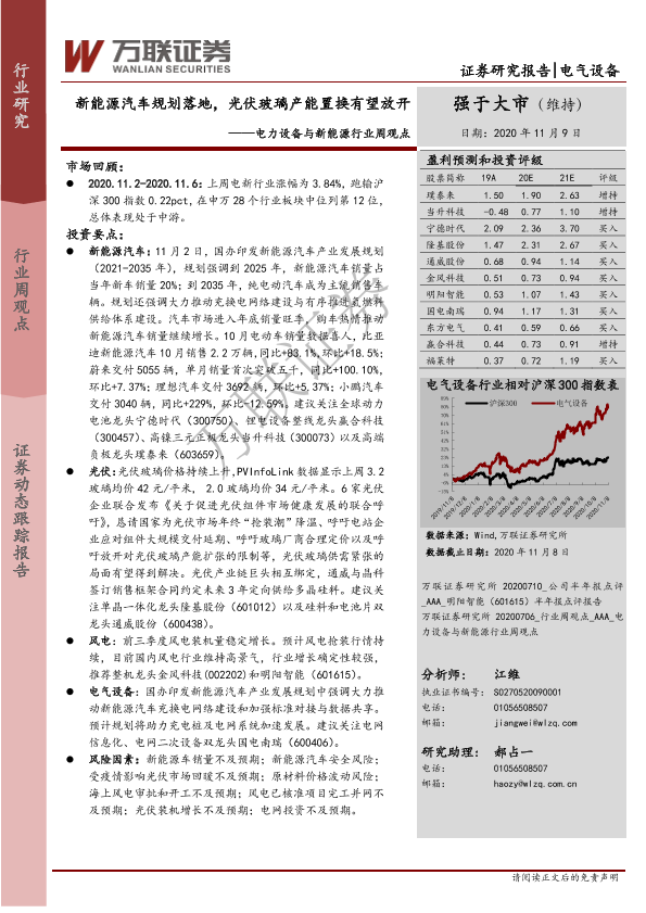 【万联证券】【20201109】电力设备与新能源行业周观点:新能源汽车规划落地,光伏玻璃产能置换有望放开-15页