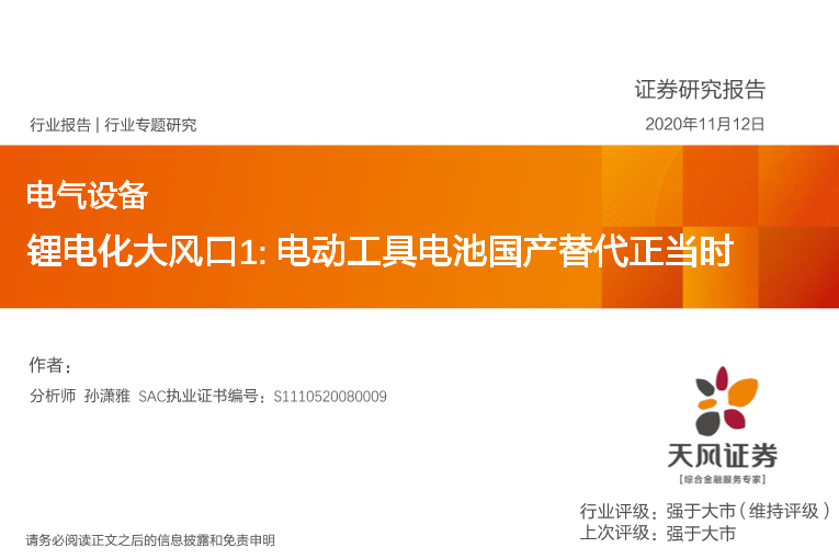 【天风证券】【20201112】锂电化大风口1 电动工具电池国产替代正当时-14页