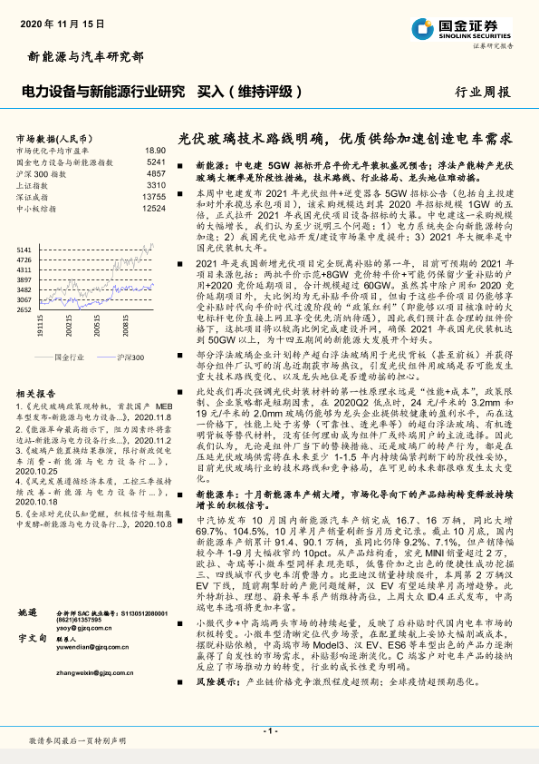 【国金证券】【20201115】电力设备与新能源行业研究:光伏玻璃技术路线明确,优质供给加速创造电车需求-4页
