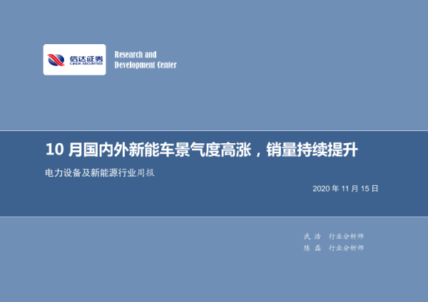 【信达证券】【20201115】20201115-信达证券-电力设备及新能源行业周报:10月国内外新能车景气度高涨,销量持续提升-9页