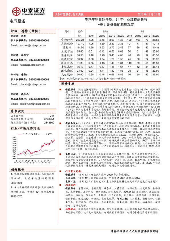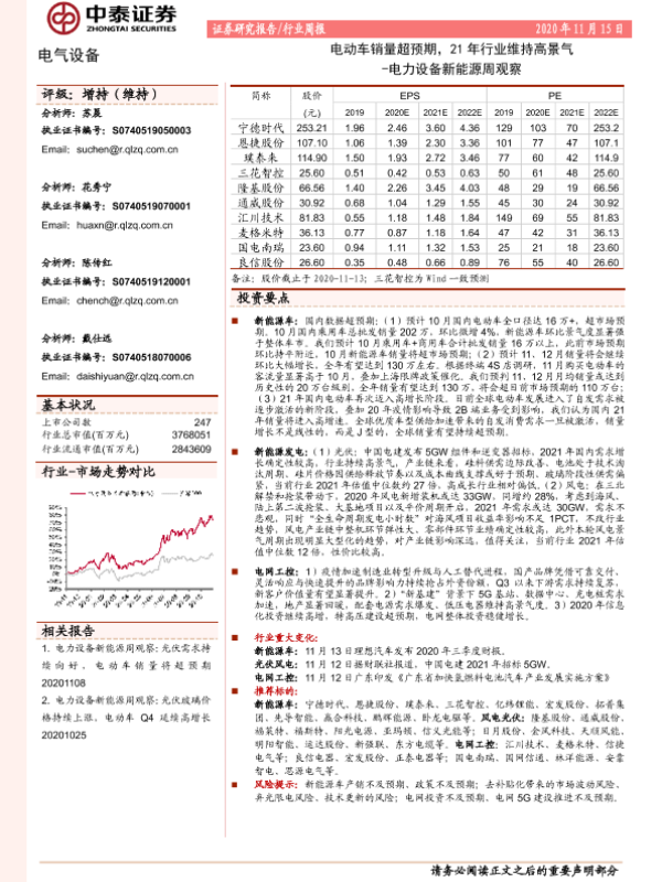 【中泰证券】【20201115】电力设备新能源周观察:电动车销量超预期,21年行业维持高景气-16页