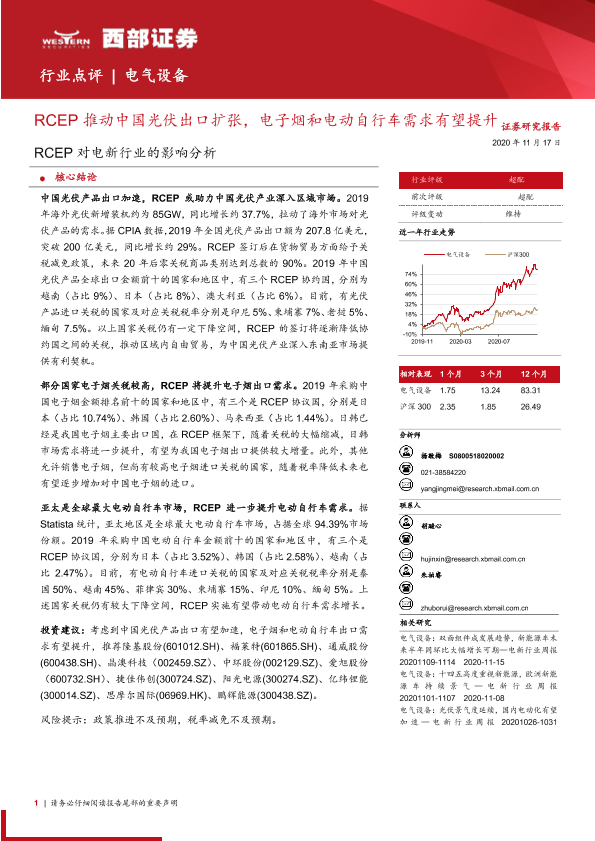 【西部证券】【20201117】RCEP对电新行业的影响分析:RCEP推动中国光伏出口扩张,电子烟和电动自行车需求有望提升-13页