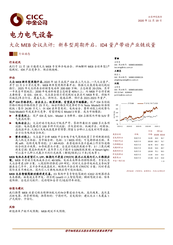 【中金公司】【20201119】电力电气设备行业:大众MEB会议点评:新车型周期开启,ID4量产带动产业链放量-5页