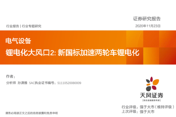 两轮车 新国标 电气设备 行业专题 锂电化