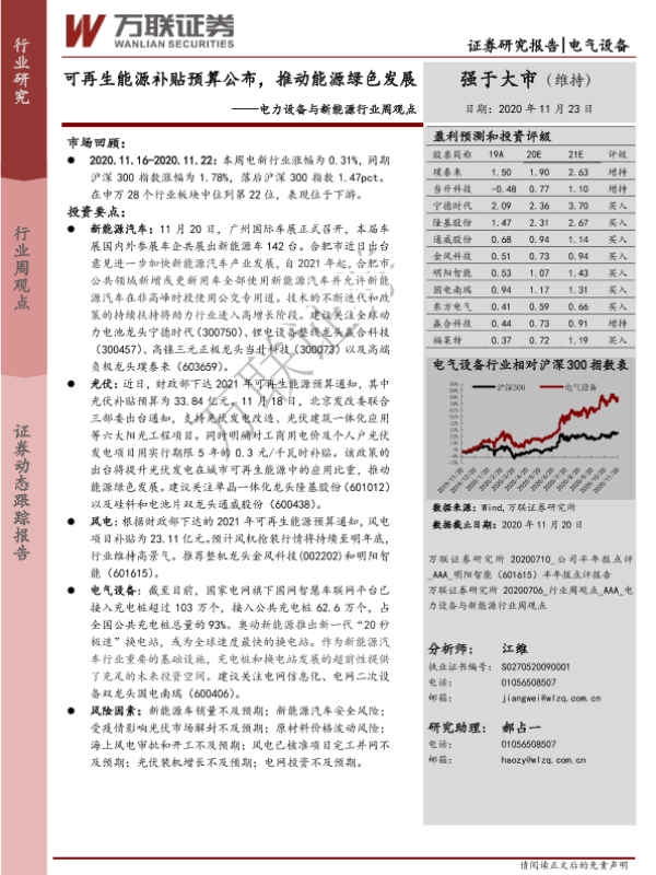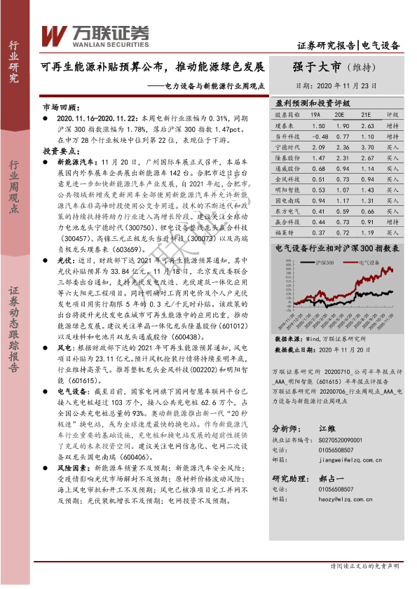 【万联证券】【20201123】电力设备与新能源行业周观点:可再生能源补贴预算公布,推动能源绿色发展-13页
