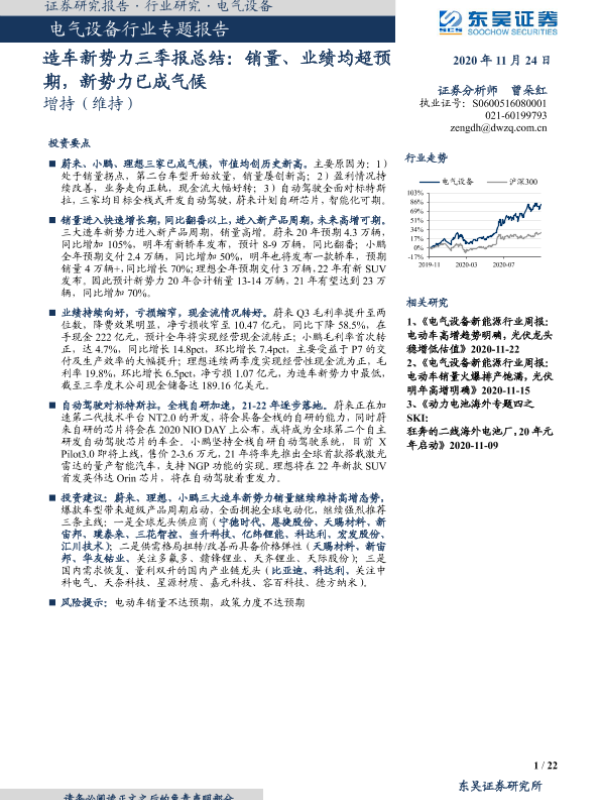 【东吴证券】【20201124】造车新势力三季报总结:销量、业绩均超预期,新势力已成气候-22页