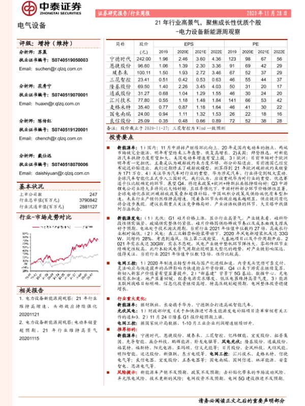 【中泰证券】【20201128】21年行业高景气,聚焦成长性优质个股 - 电力设备新能源周观察-20页