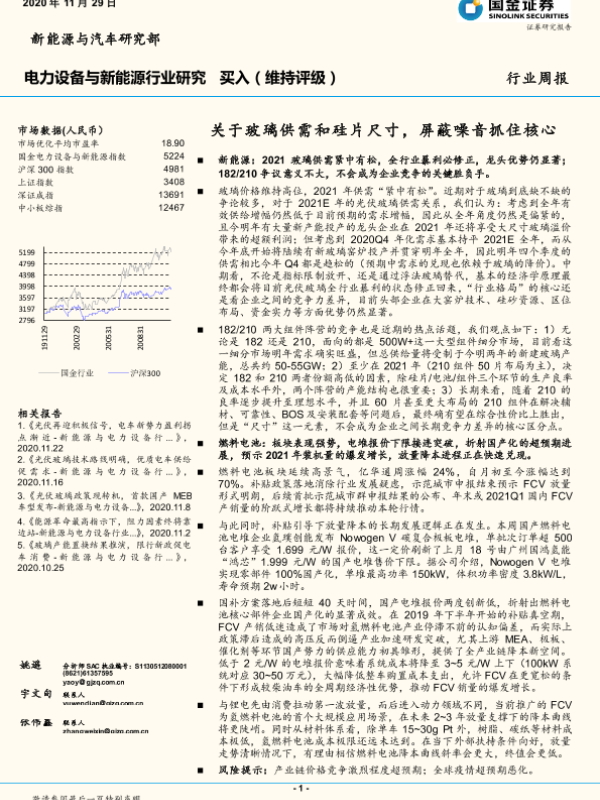 【国金证券】【20201129】电力设备与新能源行业研究:关于玻璃供需和硅片尺寸,屏蔽噪音抓住核心-4页