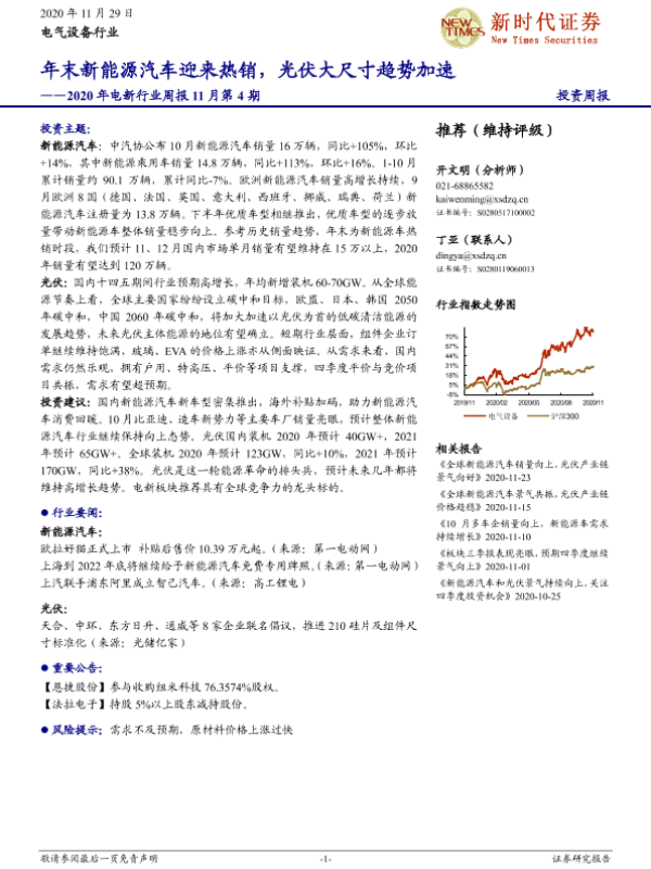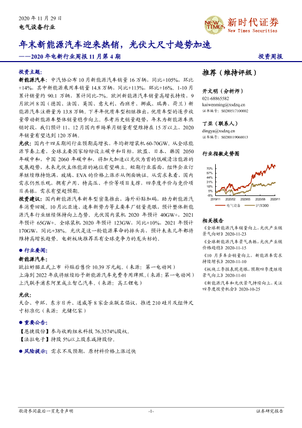 【新时代证券】【20201129】2020年电新行业周报11月第4期:年末新能源汽车迎来热销,光伏大尺寸趋势加速-13页
