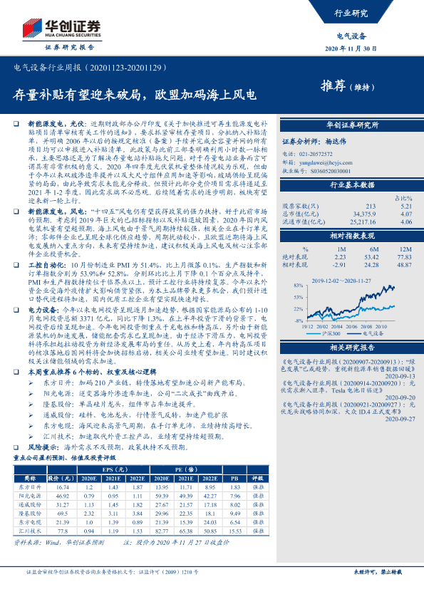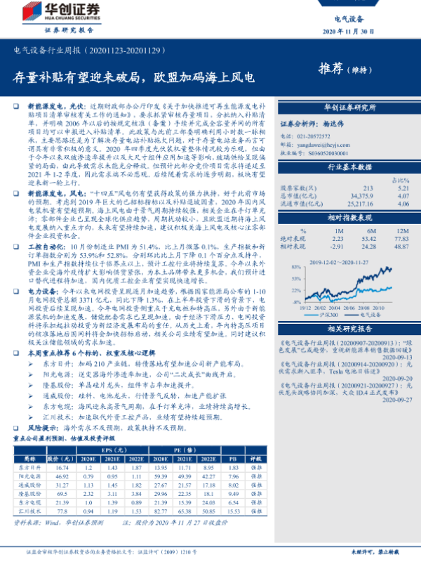 【华创证券】【20201130】电气设备行业周报:存量补贴有望迎来破局,欧盟加码海上风电-15页
