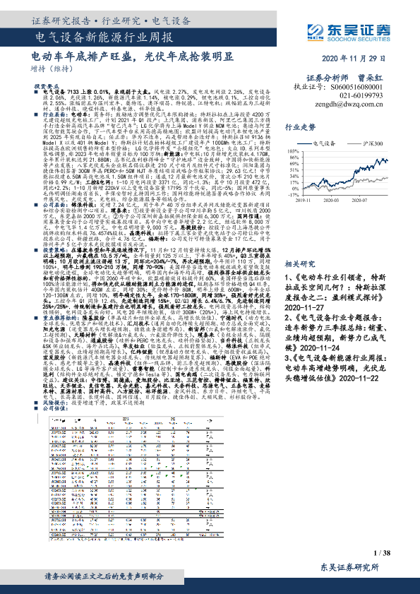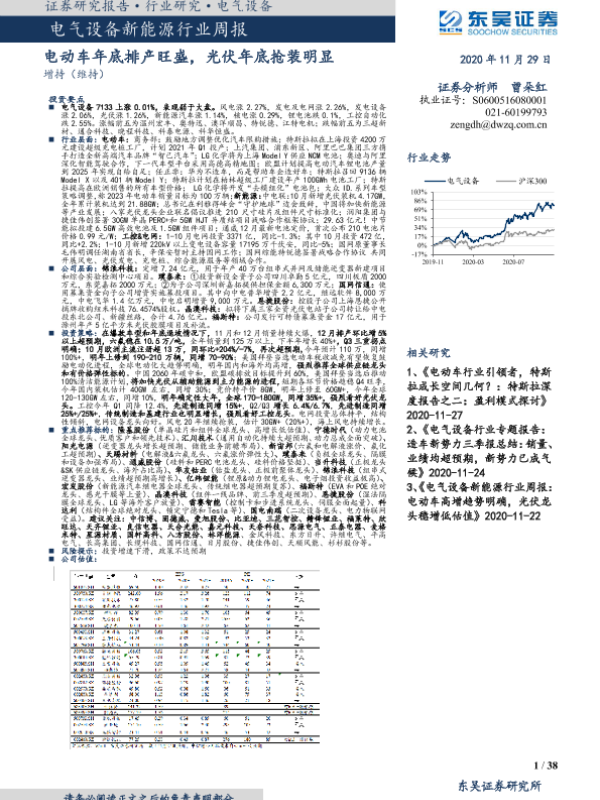 【东吴证券】【20201129】电气设备新能源行业周报:电动车年底排产旺盛,光伏年底抢装明显-38页