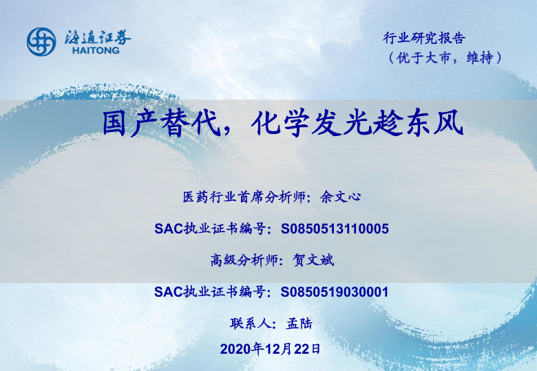 分析报告 化学发光 医药行业 国产替代 海通证券