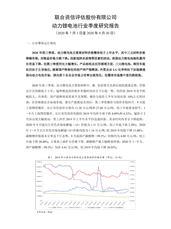 【联合资信】【20201201】动力锂电池行业季度研究报告-9页