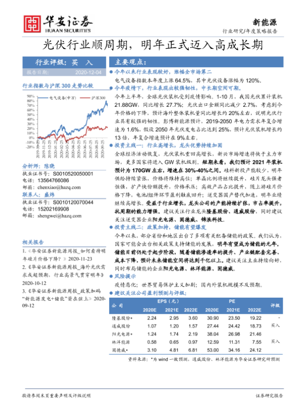 【华安证券】【20201204】20201204-华安证券-新能源年度策略报告:光伏行业顺周期,明年正式迈入高成长期-31页