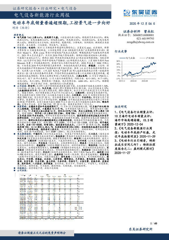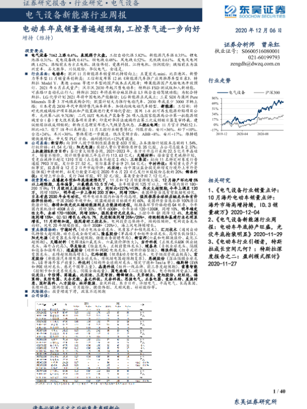 【东吴证券】【20201206】电气设备新能源行业周报:电动车年底销量普遍超预期,工控景气进一步向好-40页