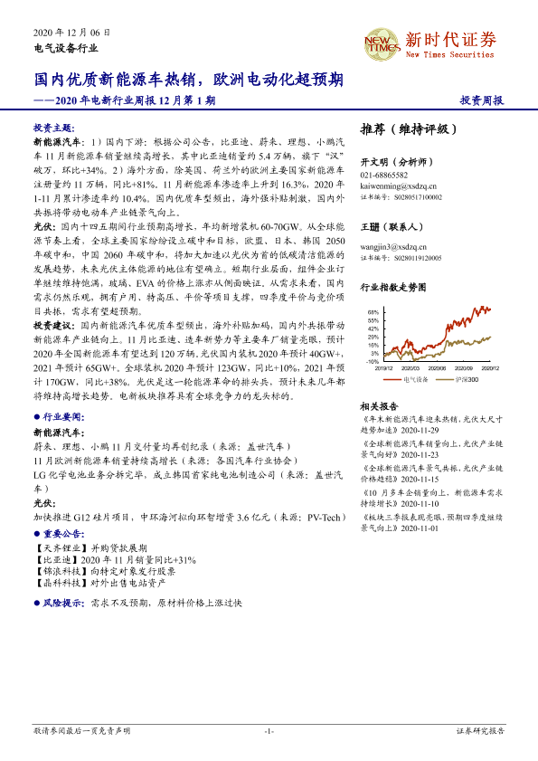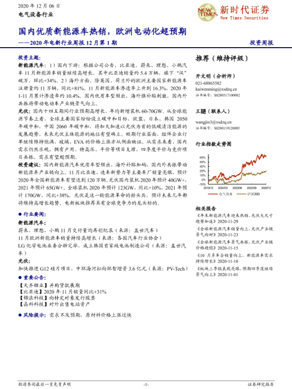 【新时代证券】【20201206】2020年电新行业周报12月第1期:国内优质新能源车热销,欧洲电动化超预期-14页