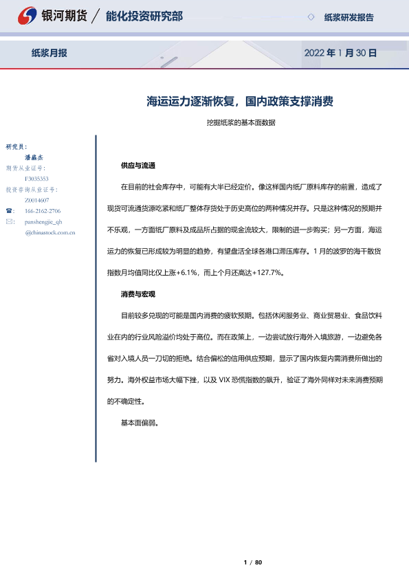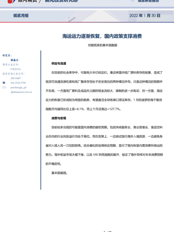 【银河期货】【20220130】纸浆月报:海运运力逐渐恢复,国内政策支撑消费-80页