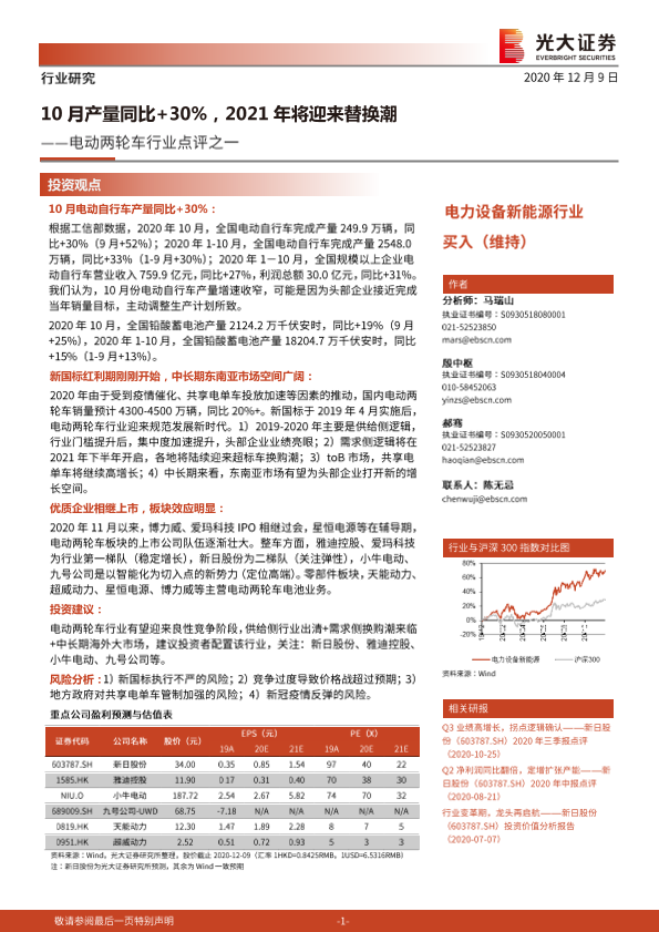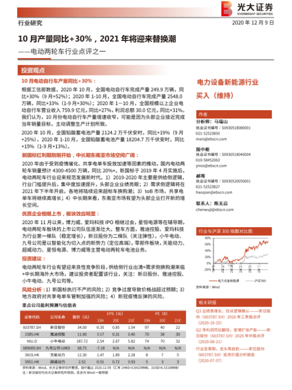【光大证券】【20201209】20201209-光大证券-电动两轮车行业点评之一:10月产量同比+30%,2021年将迎来替换潮-4页
