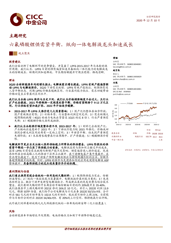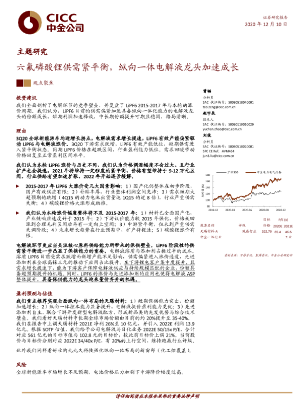 【中金公司】【20201210】电力电气设备行业主题研究:六氟磷酸锂供需紧平衡,纵向一体电解液龙头加速成长-20页