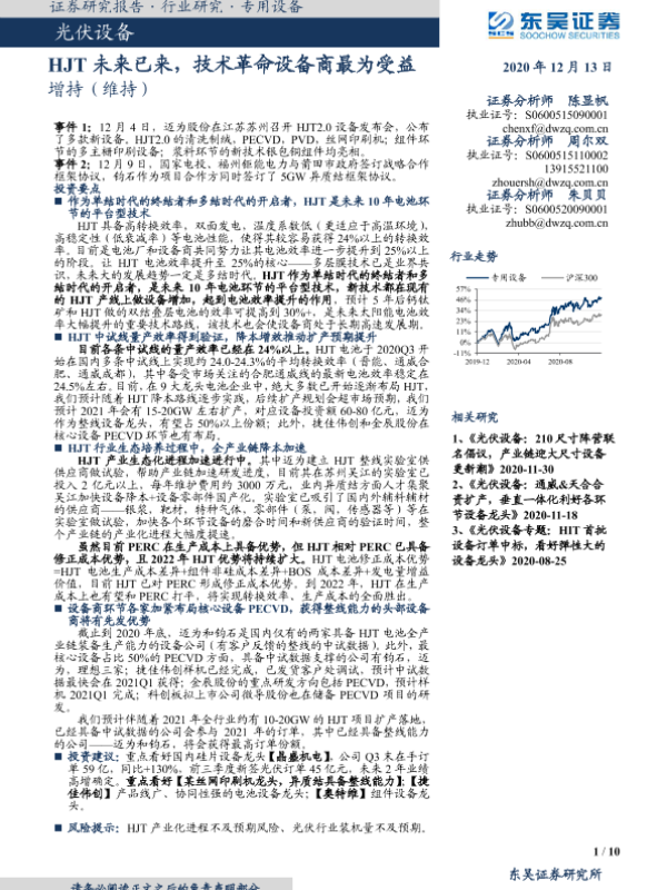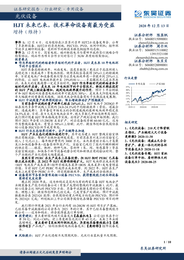 【东吴证券】【20201213】光伏设备:HJT未来已来,技术革命设备商最为受益-10页